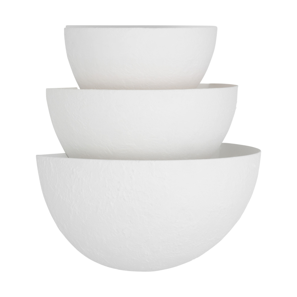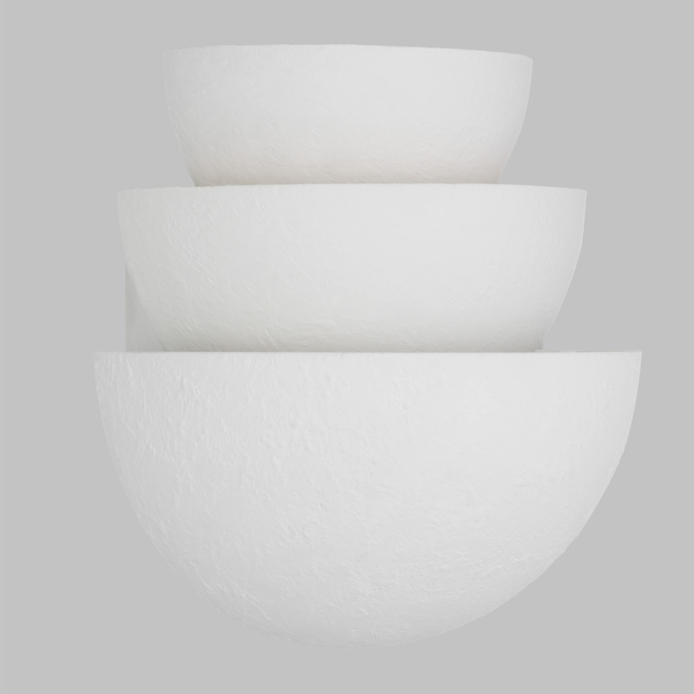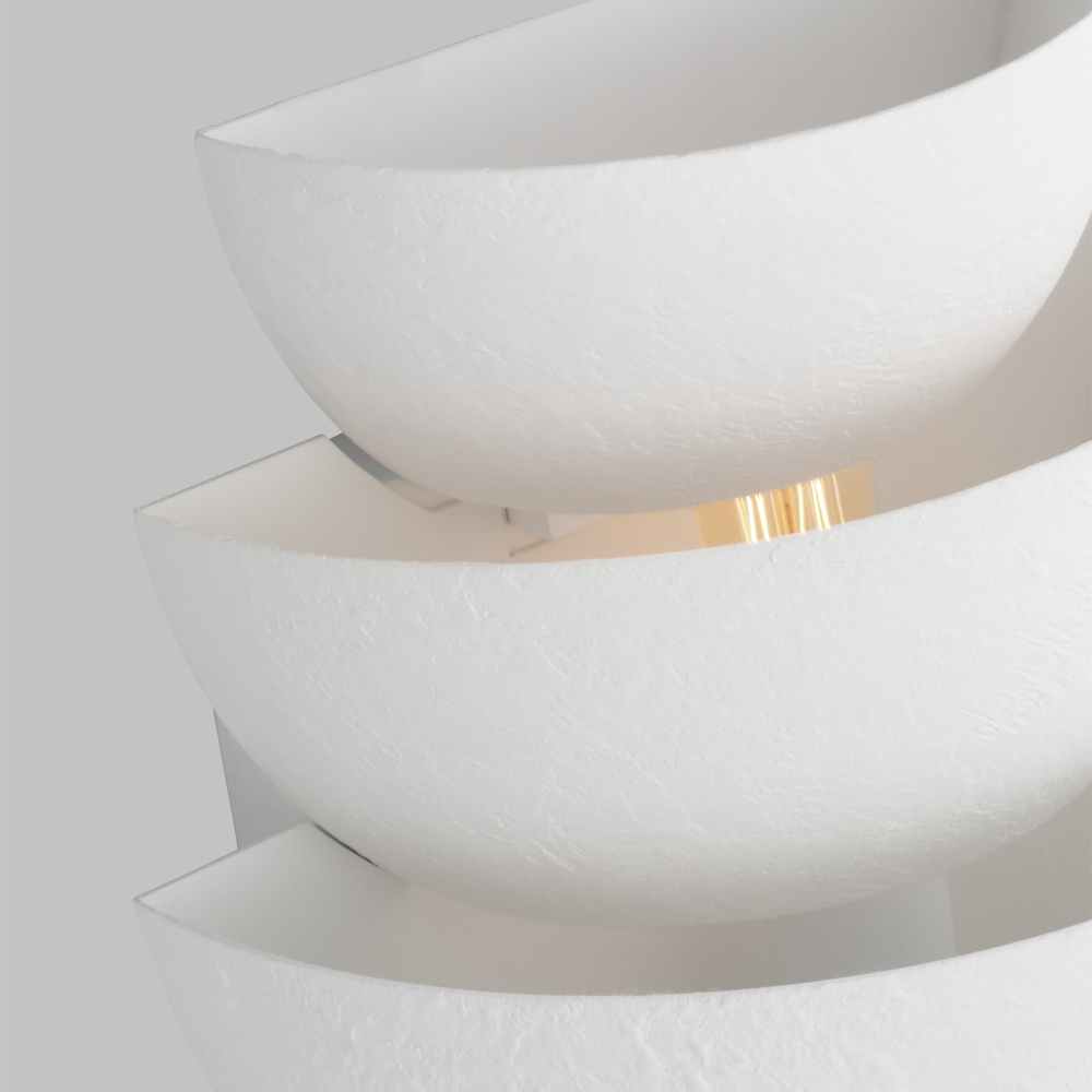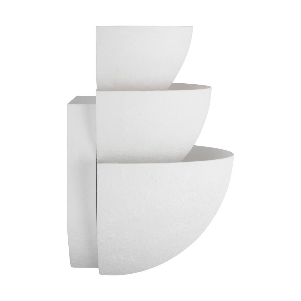 Designed by Christiane Lemieux, the Beaunay one light tiered wall sconce in cast plaster is good for flanking a fireplace, above a bedside table, or even over a vanity in a powder room. Featuring round, bowl-like shades, Beaunay reflects 1920's - 40's European design influences, everything from art deco through to Italian midcentury – even the classic torchieres by Serge Roche. This series includes 2 chandeliers, a pendant and 2 wall sconces, all available in a Cast Plaster finish which gives a beautiful hand-crafted look.