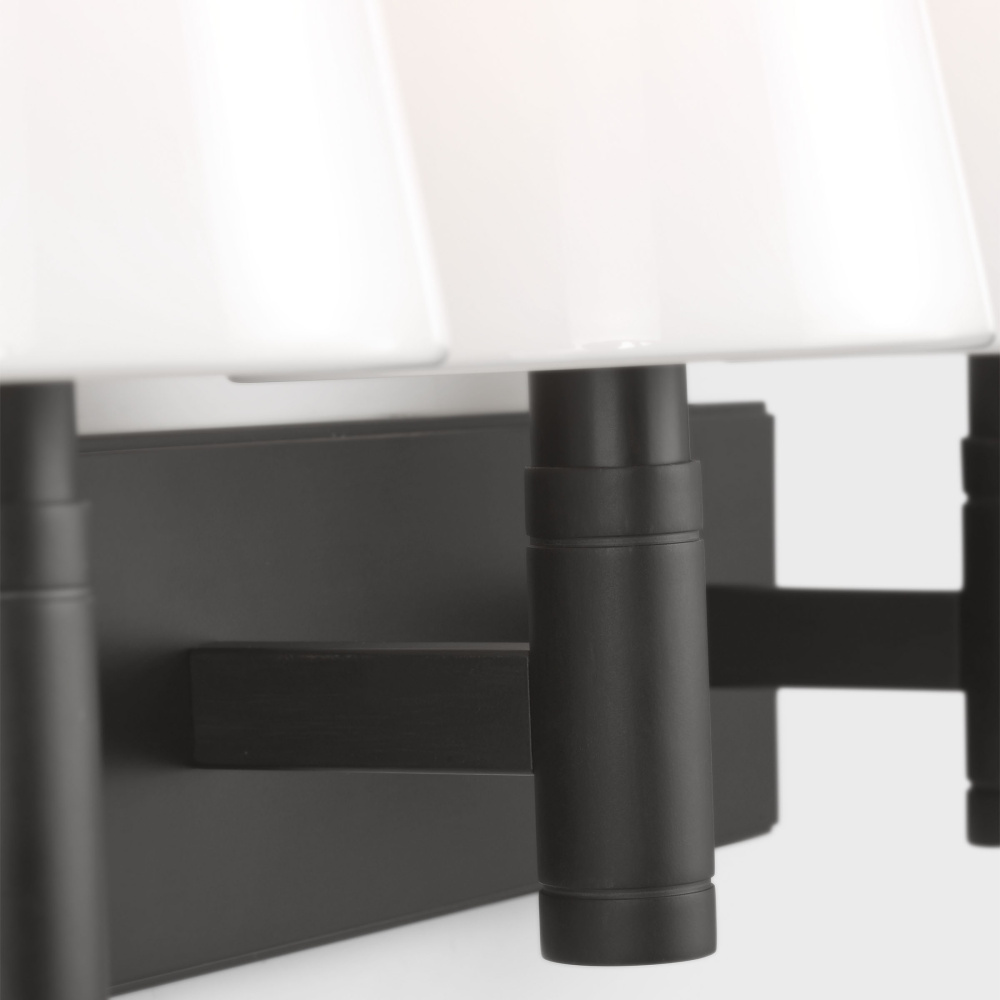 Crafted with Steel in a Aged Iron finish with milk glass shades
