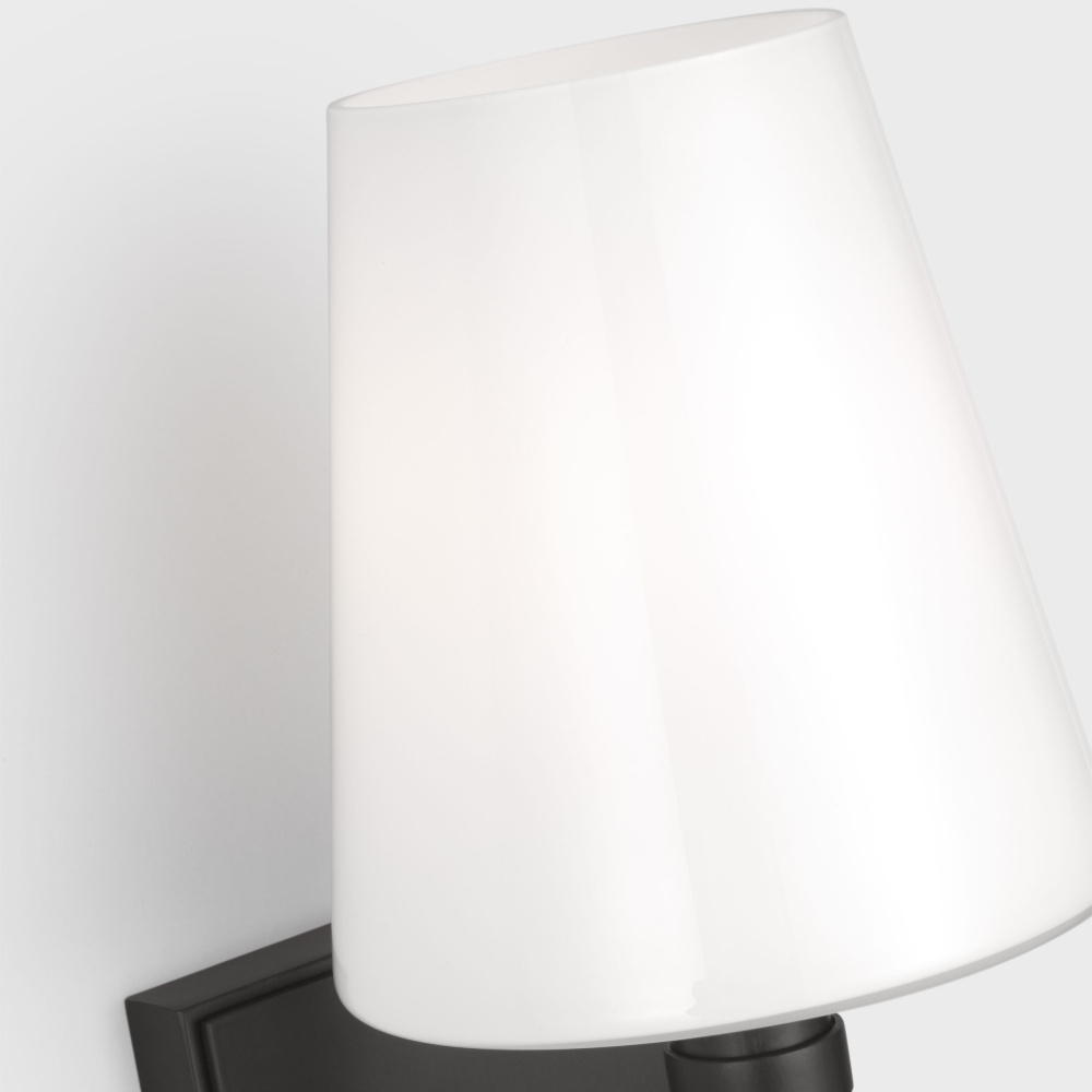 Crafted with Steel in a Aged Iron finish with milk glass shade