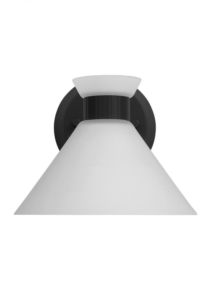 Inspired by playful mid-century modern design, the Drew & Jonathan Belcarra Small Sconce is accentuated by a flared glass shade with ribbed metal details and etched white glass that bestows an almost whimsical touch to the clean design. Available in three finishes, Brushed Steel, Midnight Black, and Satin Brass, the Belcarra looks great on its own or installed above a bathroom vanity. This fixture may be mounted in the up or down position, and is cETL listed for damp locations, making it the perfect lighting solution for any space.