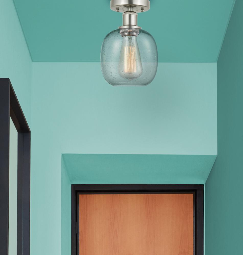 Belfast - 1 Light - 6 inch - Brushed Satin Nickel - Seedy Shade - Semi-Flush Mount