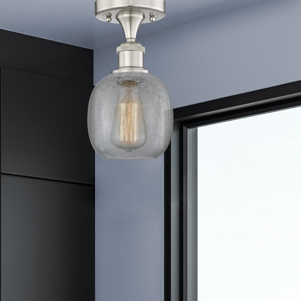 Belfast - 1 Light - 6 inch - Brushed Satin Nickel - Clear Crackle Shade - Semi-Flush Mount