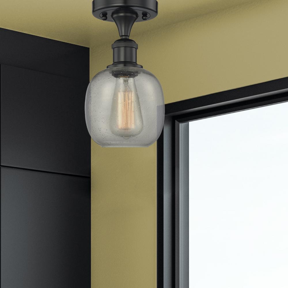 Belfast - 1 Light - 6 inch - Matte Black - Seedy Shade - Semi-Flush Mount
