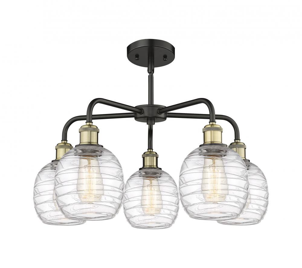 Belfast - 5 Light - 24 inch - Black Antique Brass - Deco Swirl Shade - Chandelier