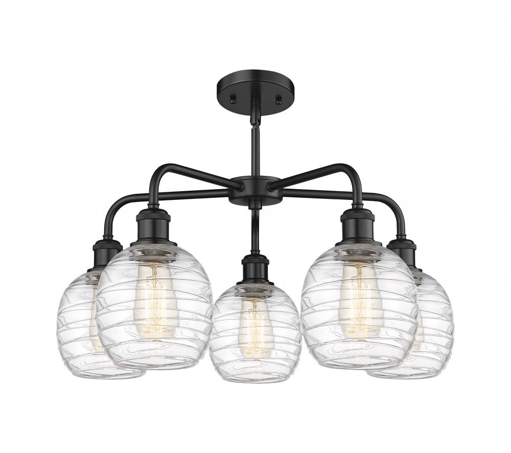Belfast - 5 Light - 24 inch - Matte Black - Deco Swirl Shade - Chandelier