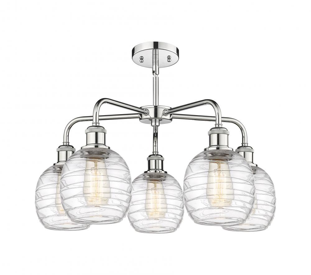 Belfast - 5 Light - 24 inch - Polished Chrome - Deco Swirl Shade - Chandelier