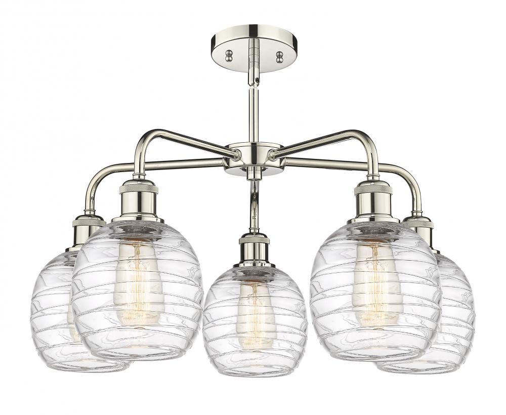 Belfast - 5 Light - 24 inch - Polished Nickel - Deco Swirl Shade - Chandelier