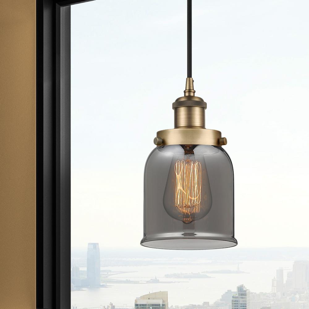 Bell - 1 Light - 5 inch - Brushed Brass - Light Smoke Shade - Cord hung - Mini Pendant