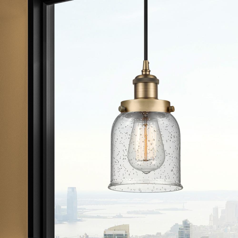Bell - 1 Light - 5 inch - Brushed Brass - Seedy Shade - Cord hung - Mini Pendant