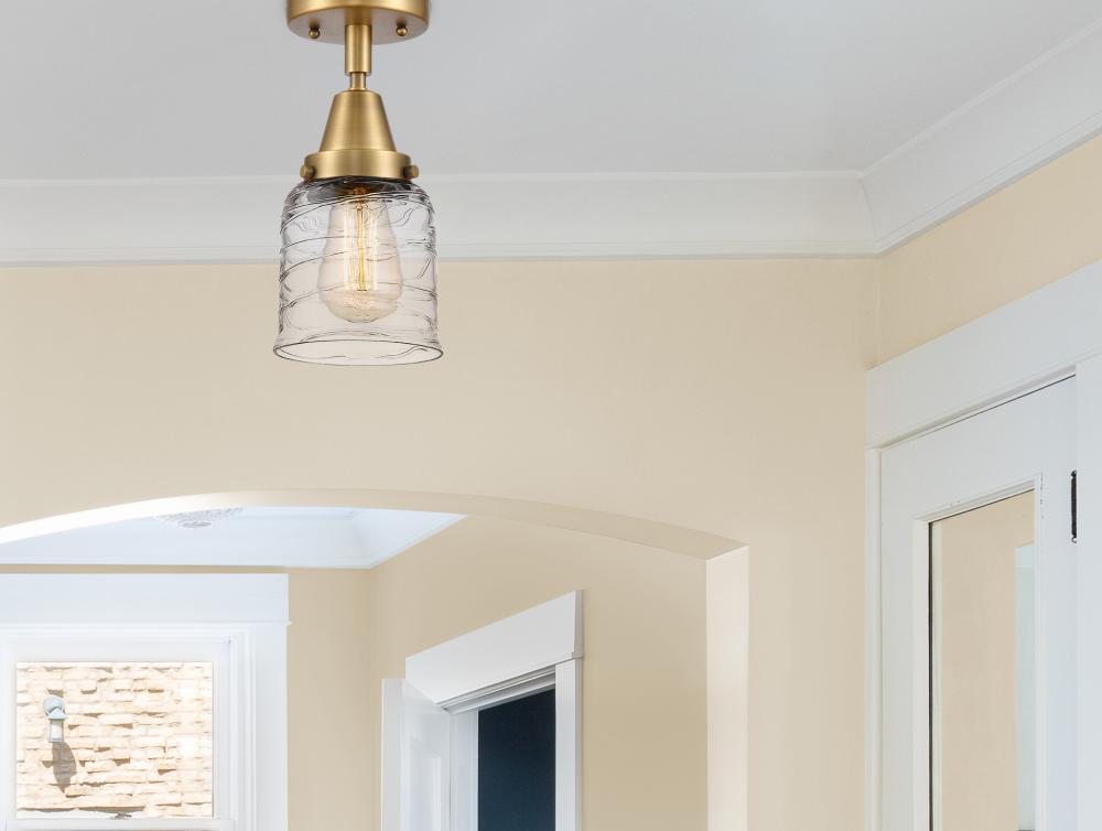 Bell - 1 Light - 5 inch - Brushed Brass - Clear Deco Swirl Shade - Semi-Flush Mount