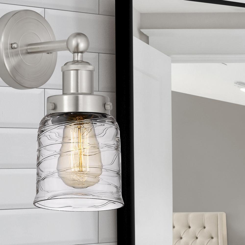 Bell - 1 Light - 5 inch - Brushed Satin Nickel - Clear Deco Swirl Shade - Sconce