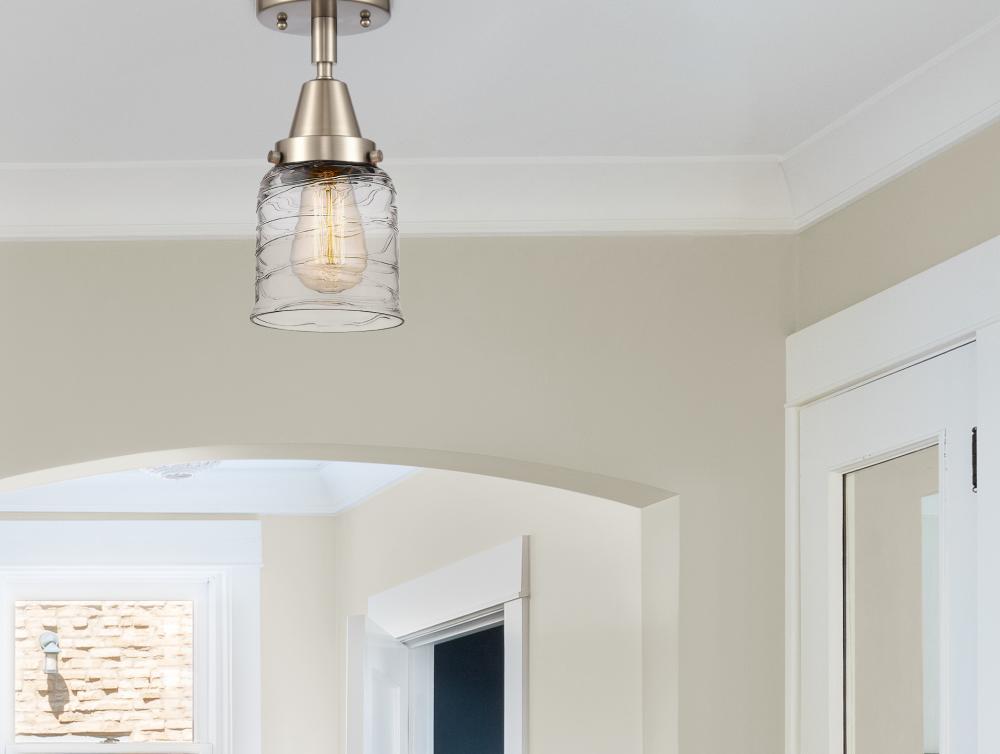 Bell - 1 Light - 5 inch - Brushed Satin Nickel - Clear Deco Swirl Shade - Semi-Flush Mount