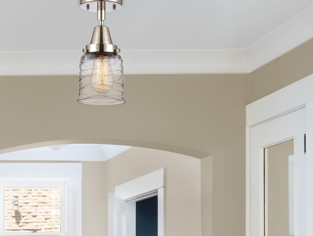 Bell - 1 Light - 5 inch - Polished Nickel - Clear Deco Swirl Shade - Semi-Flush Mount