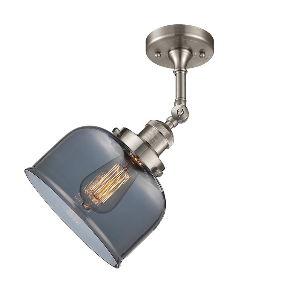 Bell - 1 Light - 8 inch - Brushed Satin Nickel - Light Smoke Shade - Adjustable Semi-Flush Mount