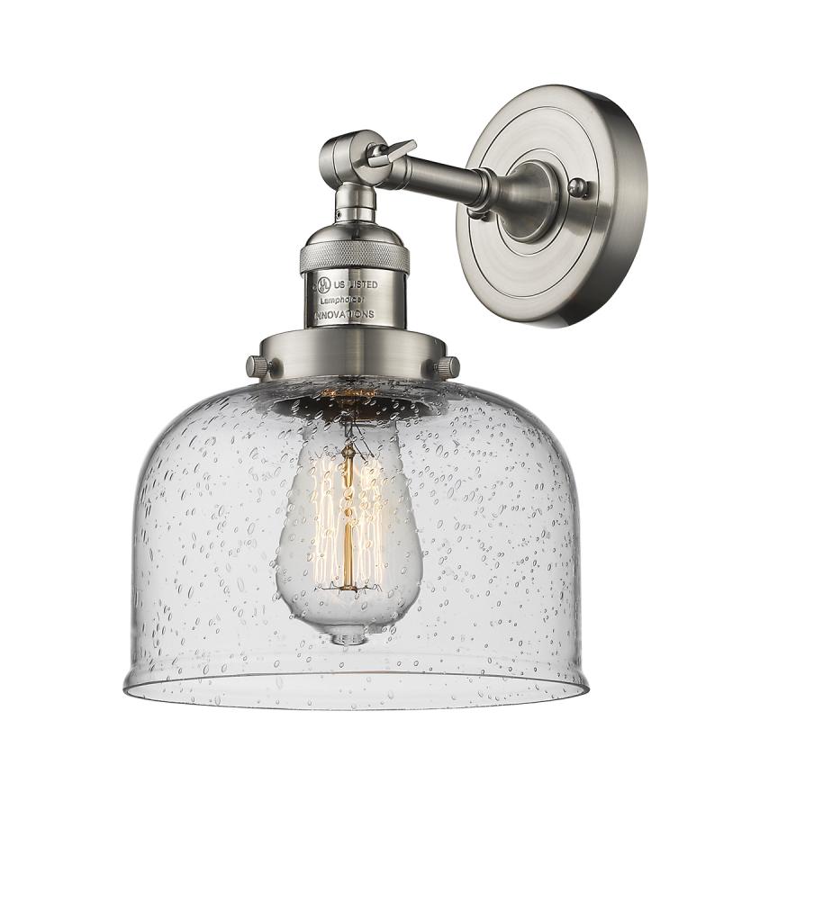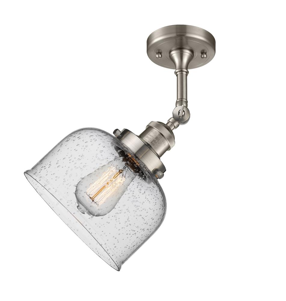 Bell - 1 Light - 8 inch - Brushed Satin Nickel - Seedy Shade - Adjustable Semi-Flush Mount