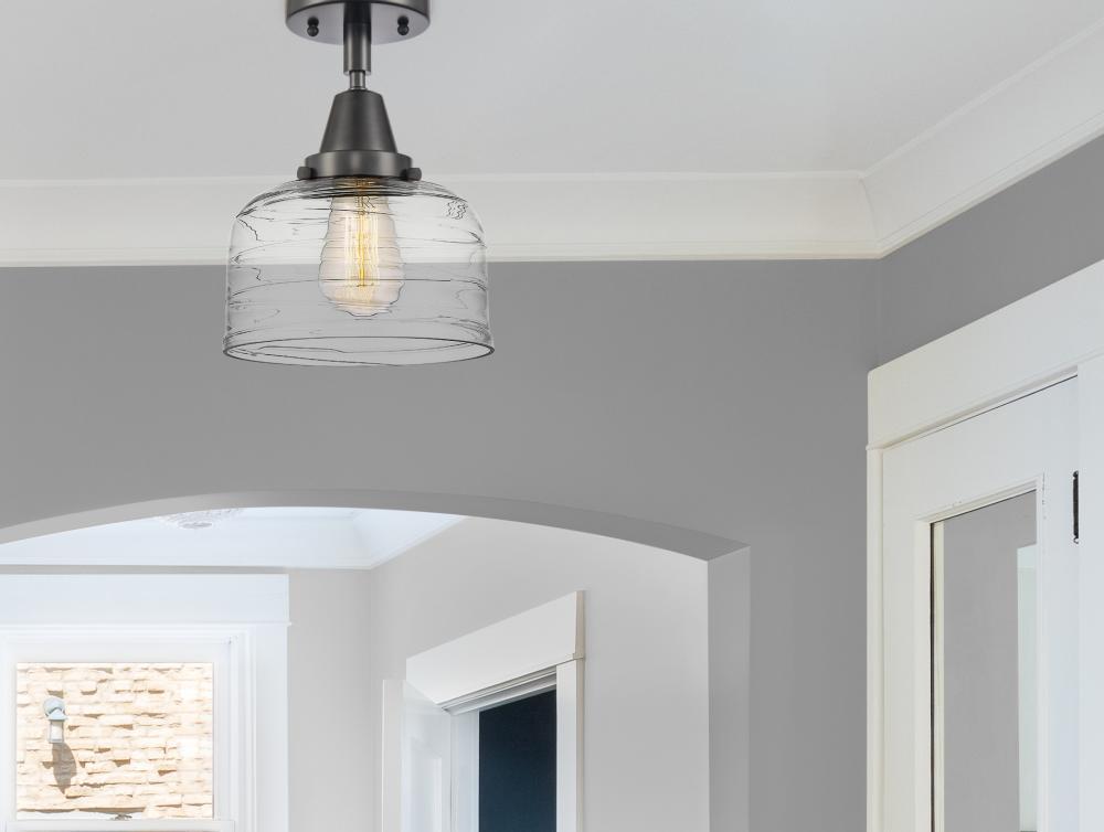 Bell - 1 Light - 8 inch - Matte Black - Clear Deco Swirl Shade - Semi-Flush Mount