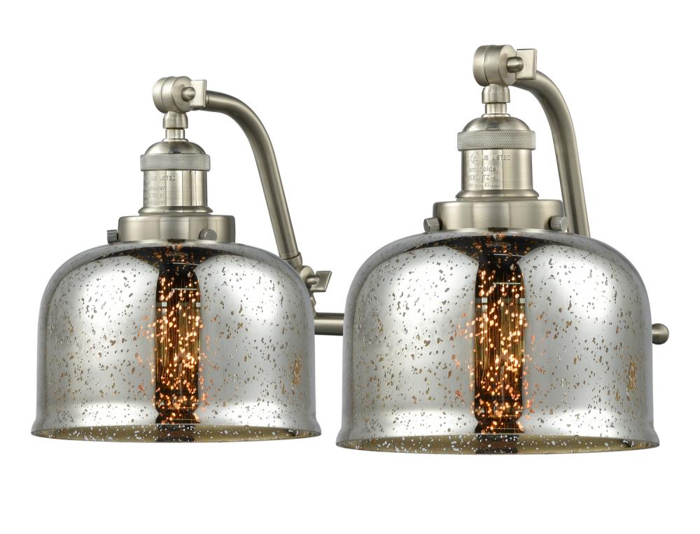 Bell - 2 Light - 18 inch - Brushed Satin Nickel - Silver Plated Mercury Shade - Adjustable Bath Vanity Light