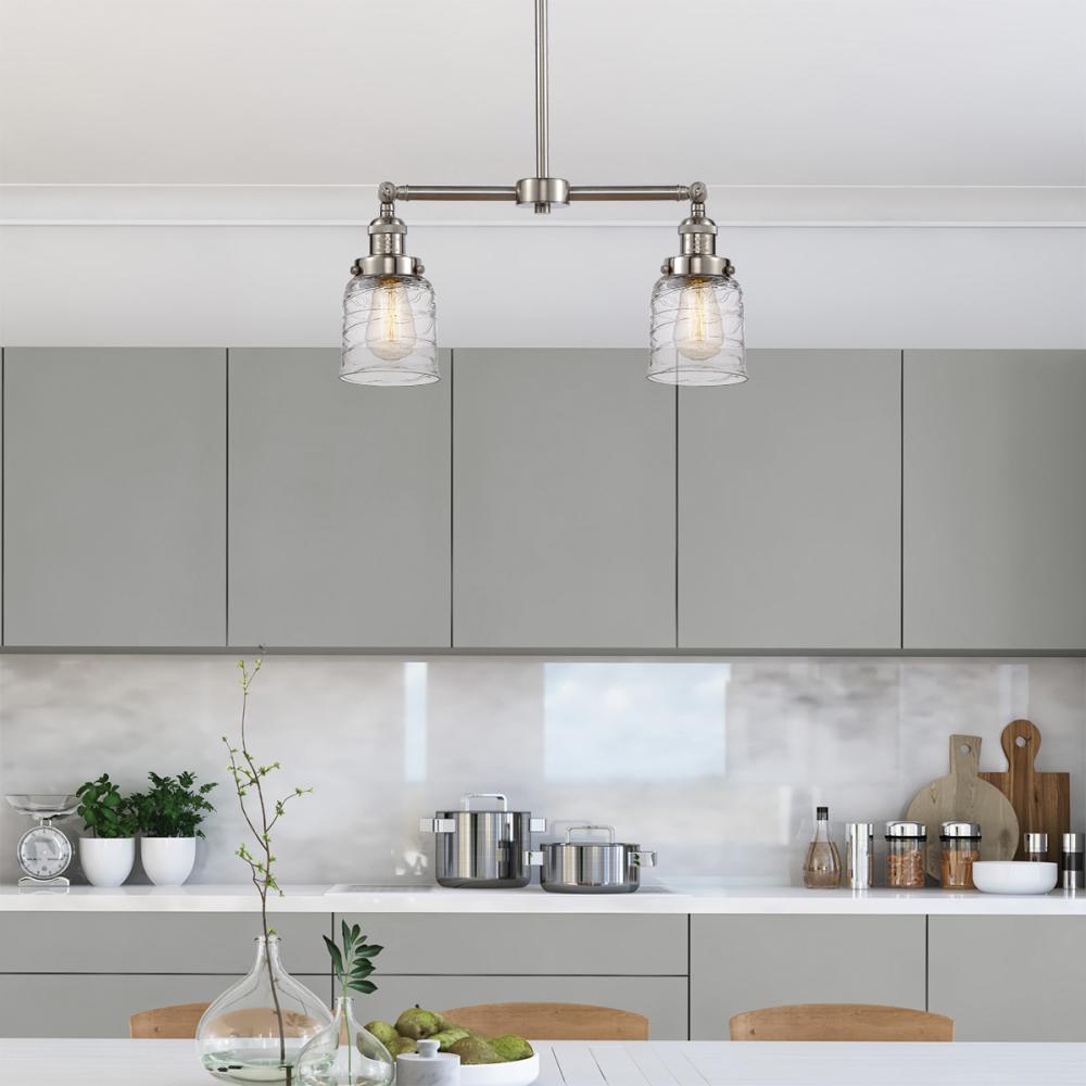 Bell - 2 Light - 21 inch - Brushed Satin Nickel - Clear Deco Swirl Shade - Stem Hung - Adjustable Island Light