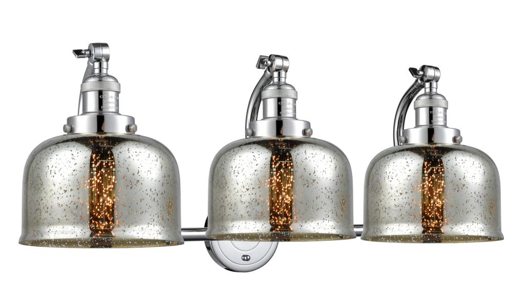 Bell - 3 Light - 28 inch - Polished Chrome - Silver Plated Mercury Shade - Adjustable Bath Vanity Light