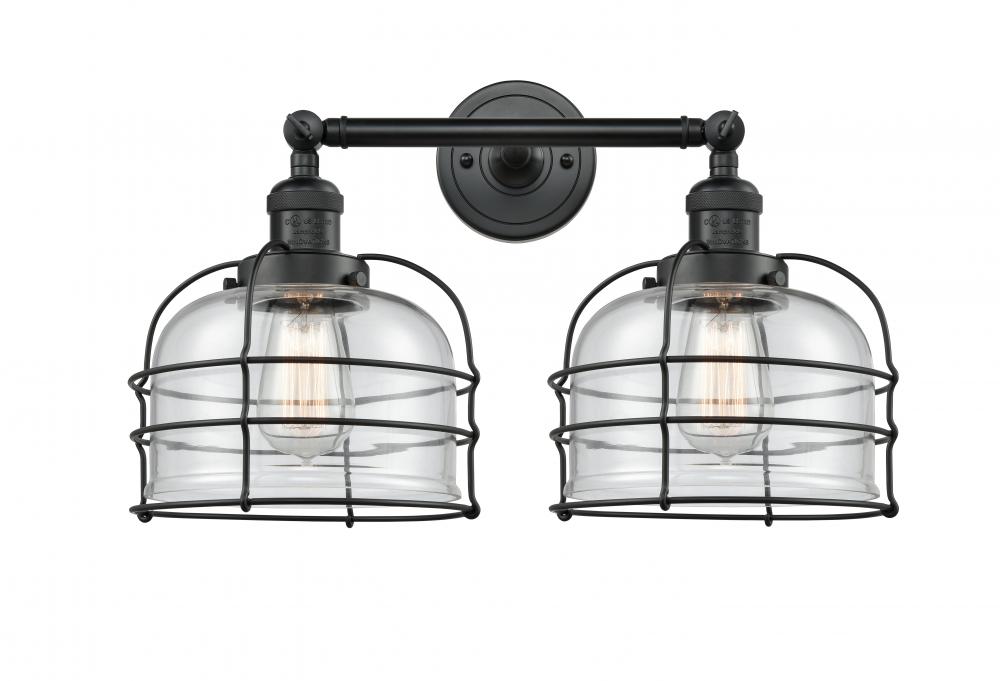 Bell Cage - 2 Light - 9 inch - Matte Black - Clear Shade - Adjustable Bath Vanity Light