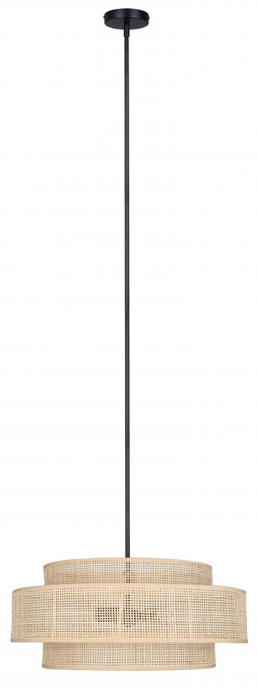 Introducing the BELLAMY 3 Lt 22inch Width Rod Chandelier, a stylish lighting fixture that adds warmth and character to any room. Featuring a natural rattan shade, this chandelier brings a touch of nature indoors. With three lights and a capacity for 60W Type A bulbs, it provides ample illumination for your space. The adjustable height, ranging from 17.25 to 59.25 inches, allows you to customize the chandelier to fit your ceiling height and room layout perfectly. Add a touch of rustic charm to your home decor with the BELLAMY chandelier.