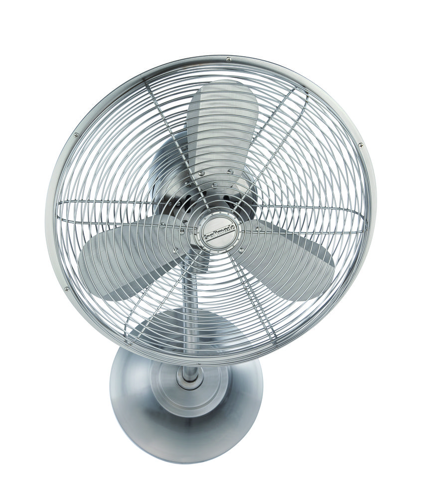 With a heavy-duty, 3-speed oscillating motor and 14" blades, this wall-mounted fan combines the retro style of a table fan with the power and efficiency of a ceiling fan. Finished in your choice of Aged Bronze Textured or Stainless Steel, it includes a Wall Control with 3-speed and Oscillating functions.