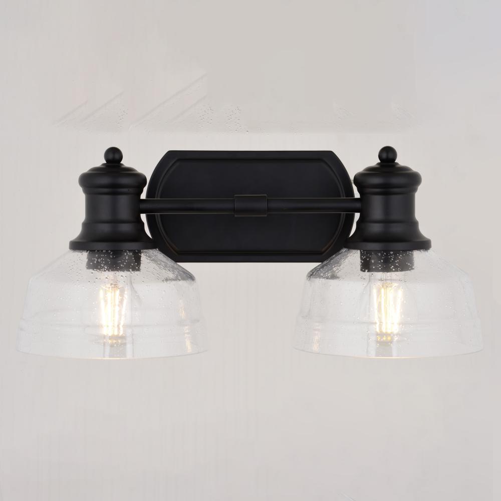 The Beloit vanity adds a welcoming and inviting feel to your bathroom. Soft curving lines finished in matte black, are paired with large clear seeded glass shades, creating a look that accents the most comfortable spaces. Combine that with a vintage Edison style filament bulb to complete the look. Bring a level of sophistication to your trendy farmhouse or urban style with this fixture.
