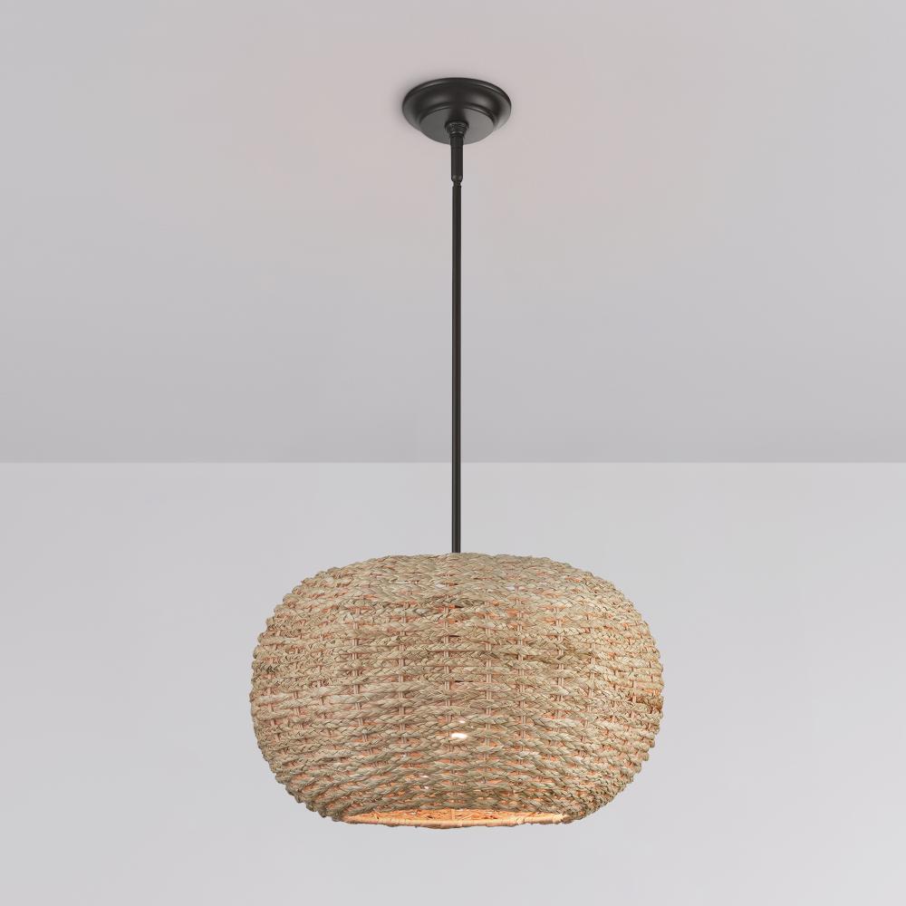 The coastal-inspired Bemo Family of pendant lighting provides an earthy and organic design touch to any kitchen, dining room, bedroom, or office. The natural basketweave rattan shade with a spheroid metal frame perfectly diffuses lamp light for an understated effect. Available in 1- and 3-light options, these fixtures provide a casual design statement for modern or resort homes.