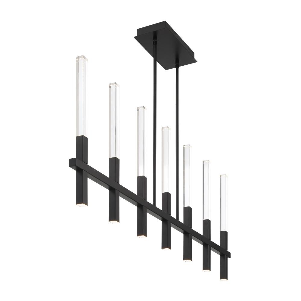 Its crystal rectangular prism and sharp bevelled edges creates a brilliant illumination for the benicio collection. Solid glass vertical spires cast vivid refractions across wall and ceiling surfaces. The thin simple geometric shape lends itself to luxurious and contemporary environments while providing a dual LED light source.