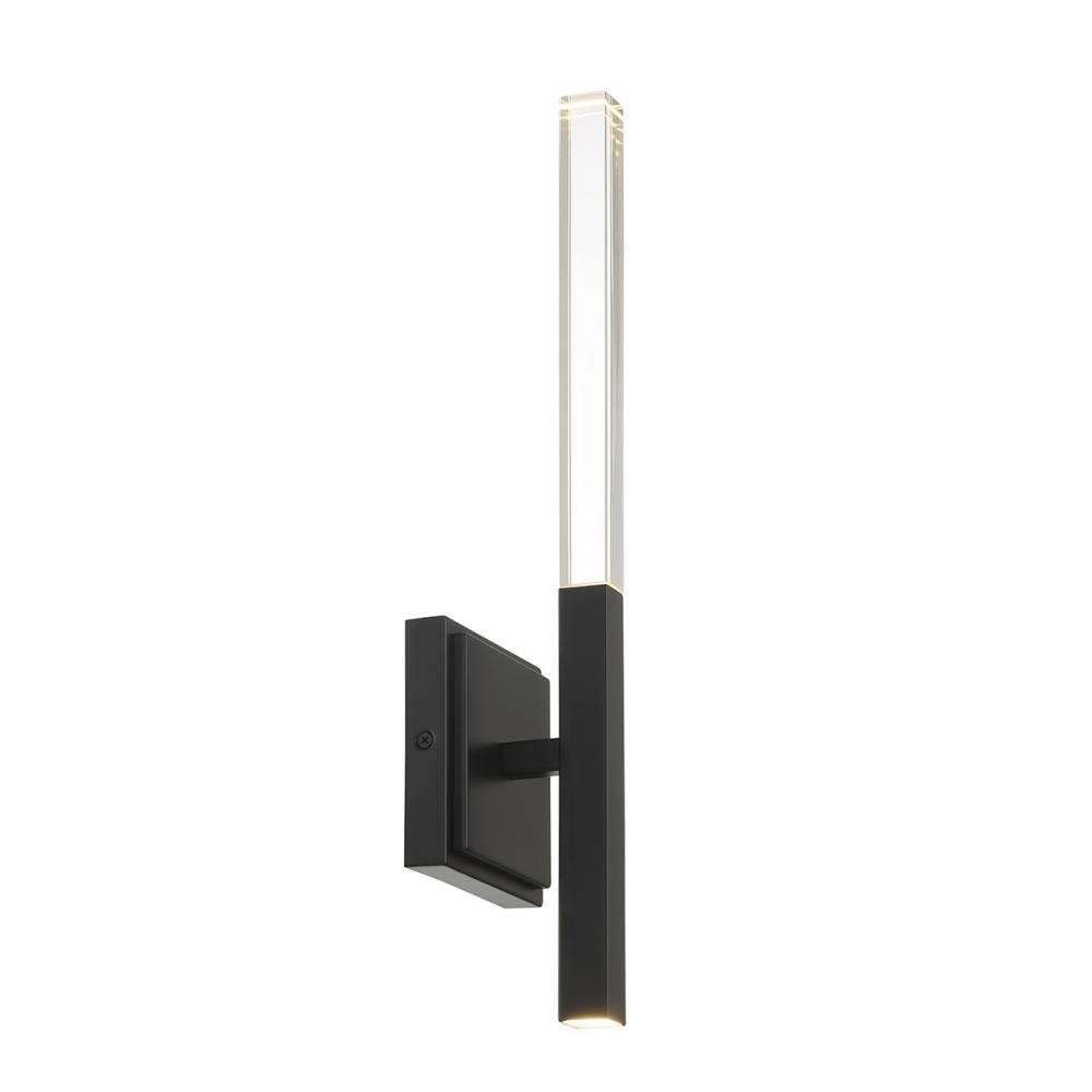 Its crystal rectangular prism and sharp bevelled edges creates a brilliant illumination for the benicio collection. Solid glass vertical spires cast vivid refractions across wall and ceiling surfaces. The thin simple geometric shape lends itself to luxurious and contemporary environments while providing a dual LED light source.