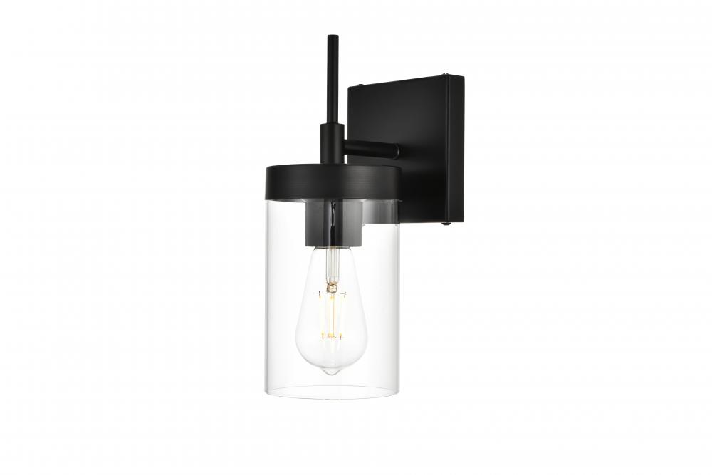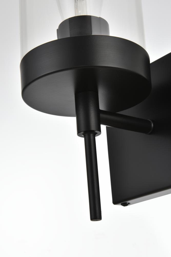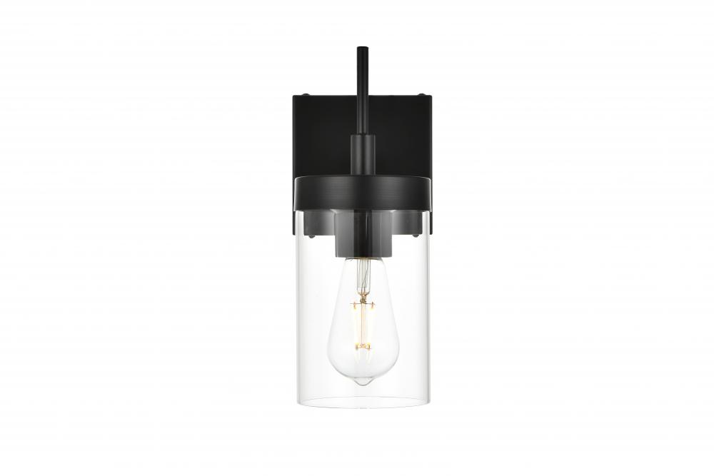 Defined by curved metal arm extends to suspend the clear bell glass shade. A contemporary stunner, it shows off the straight line details from the backplate and the streamline thin metal arm. Compatible with dimmers, so you'll have the right amount of light in any given time of the day. Completely versatile, you can place this wall light as an uplight or downlight. Rated for use in damp locations, this will work perfectly over a vanity in your bathroom.