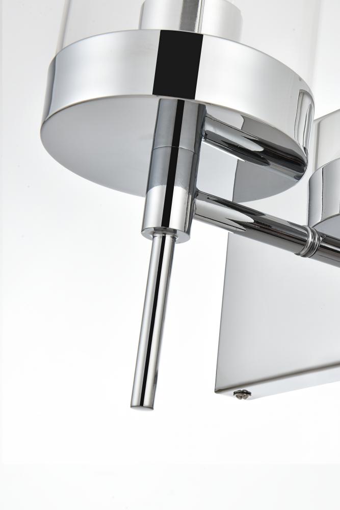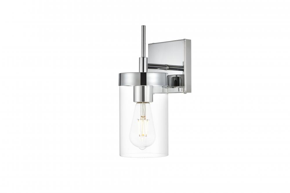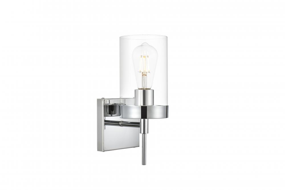 Defined by curved metal arm extends to suspend the clear bell glass shade. A contemporary stunner, it shows off the straight line details from the backplate and the streamline thin metal arm. Compatible with dimmers, so you'll have the right amount of light in any given time of the day. Completely versatile, you can place this wall light as an uplight or downlight. Rated for use in damp locations, this will work perfectly over a vanity in your bathroom.