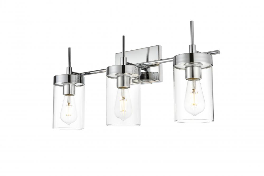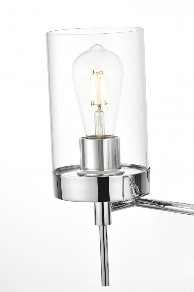 Defined by curved metal arm extends to suspend the clear bell glass shade. A contemporary stunner, it shows off the straight line details from the backplate and the streamline thin metal arm. Compatible with dimmers, so you'll have the right amount of light in any given time of the day. Completely versatile, you can place this wall light as an uplight or downlight. Rated for use in damp locations, this will work perfectly over a vanity in your bathroom.