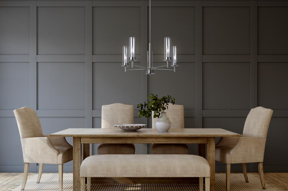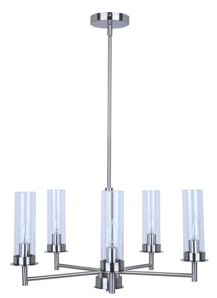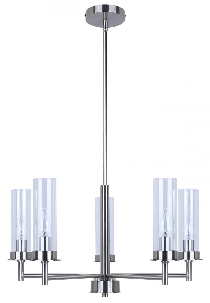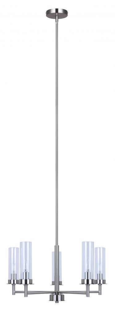 BENSON, ICH1205A05BN, 5 Lt Rod Chandelier, Clear Glass, 60W Type C, 23inch W x 20.625 - 62.625inch H