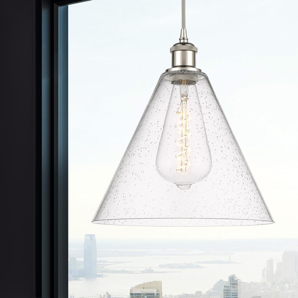 Berkshire - 1 Light - 12 inch - Polished Nickel - Seedy Shade - Cord hung - Mini Pendant