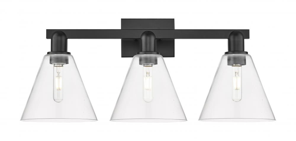 Berkshire - 3 Light - 26 inch - Matte Black - Clear Shade - Bath Vanity Light