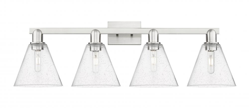 Berkshire Glass - 4 Light - 35 inch - Brushed Satin Nickel - Seedy shade - Bath Vanity Light