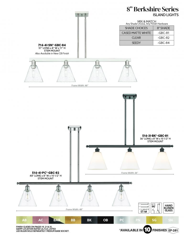 Berkshire Glass - 4 Light - 51 inch - Antique Brass - Stem hung - Island Light