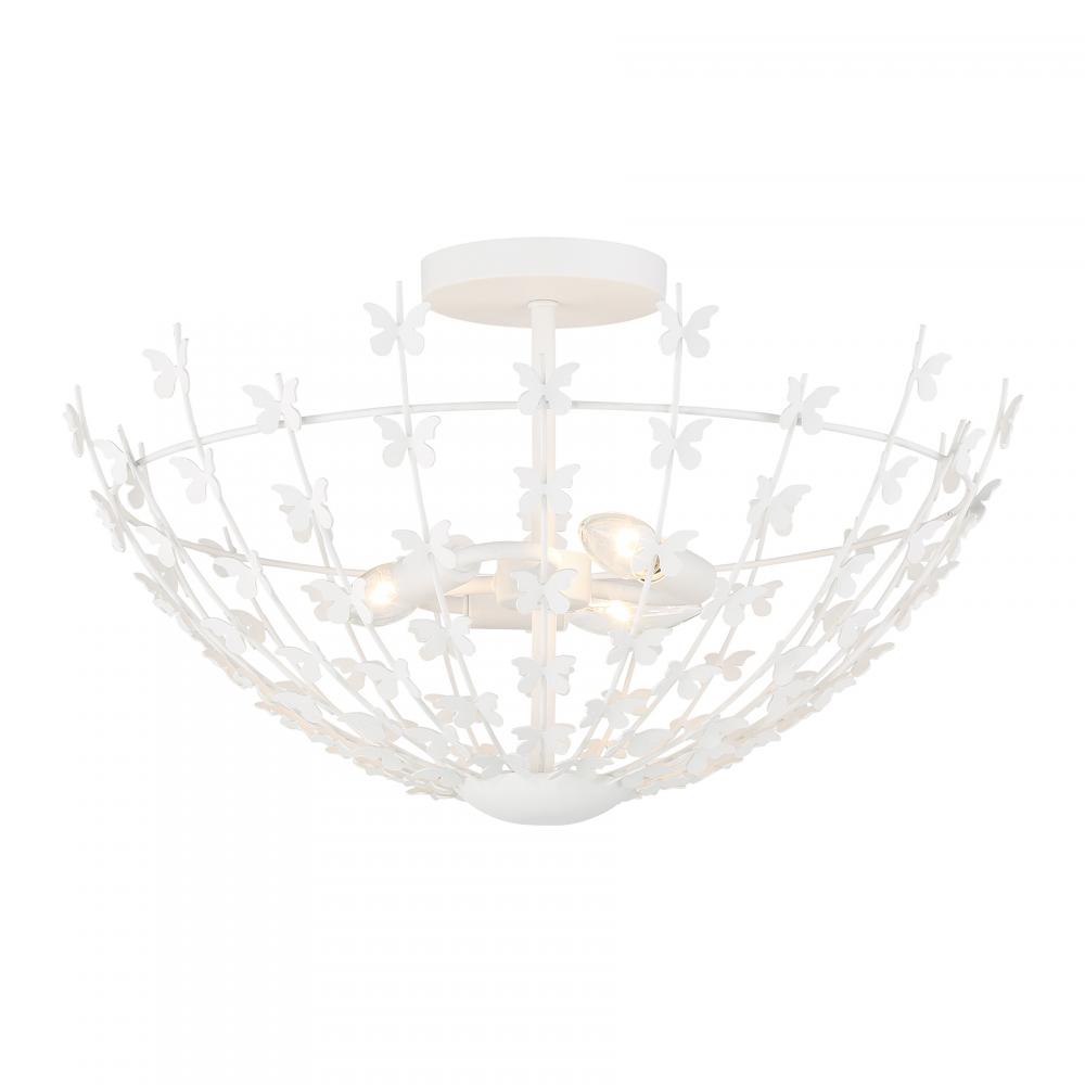 Add a little magic to any room with the whimsical Savoy House Birch 3-light ceiling semi-flush mount, which features an open bowl-shaped structure adorned with rows of lovely metal butterflies finished in Bisque White. It is 11" in height and 20" in width. Uses three candelabra size bulbs of up to 60 watts per bulb. Bulbs are not included.