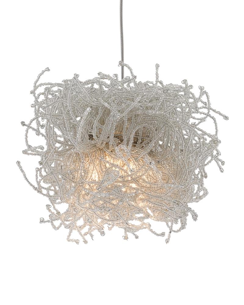 The Birds Nest Rectangular 15-Light Multi-Drop Pendant is an effervescent beaded pendant that looks like luminous nests. Rather than twigs, the shades are made up of whorls of clear beads strung along pieces of wire. It takes many hours for our artisans to create these shades that look so whimsical. The canopy of this piece is luminous in a painted silver finish. This fixture is among Currey & Company's multi-drop pendant collection, which includes multiple configurations.