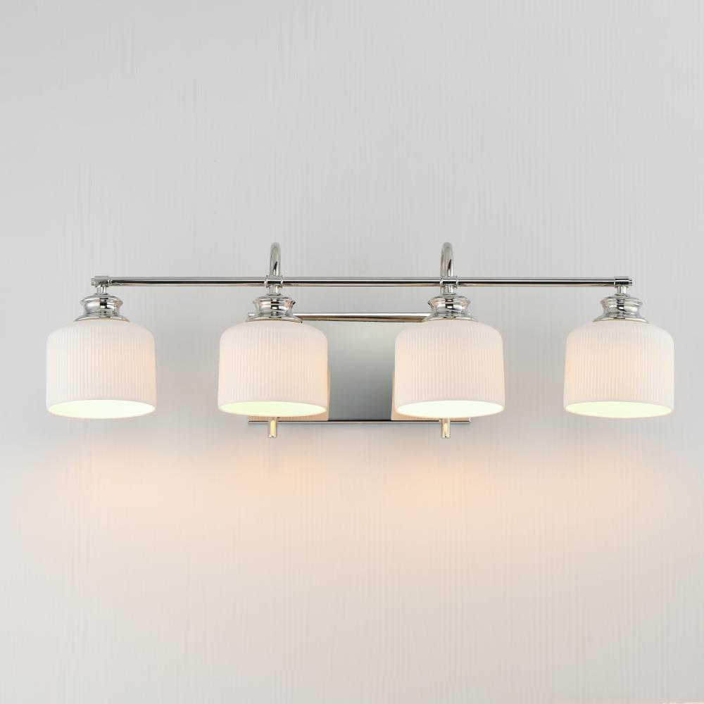 Ribbed ceramic shades are gracefully suspended on classic arching tube frames, creating a timeless yet modern design. The matte bisque-fired ceramic is translucent softly diffuses light while highlighting the ribbed raised pattern. Available in elegant fin