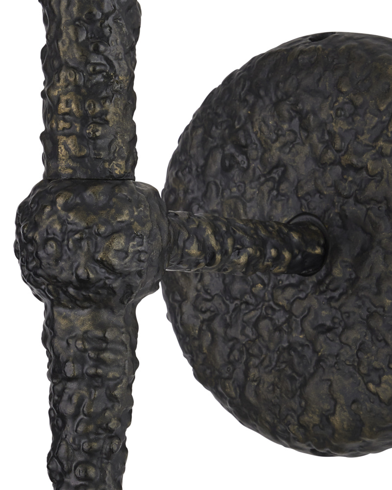 The Blackthorn Wall Sconce has a medieval feel that pays homage to its namesake plant, which has been springing up in European gardens since the Middle Ages. Made of aluminum, the metal is covered in an aged bronze finish that gathers in the crevices to bring an uptick in the textural feel.