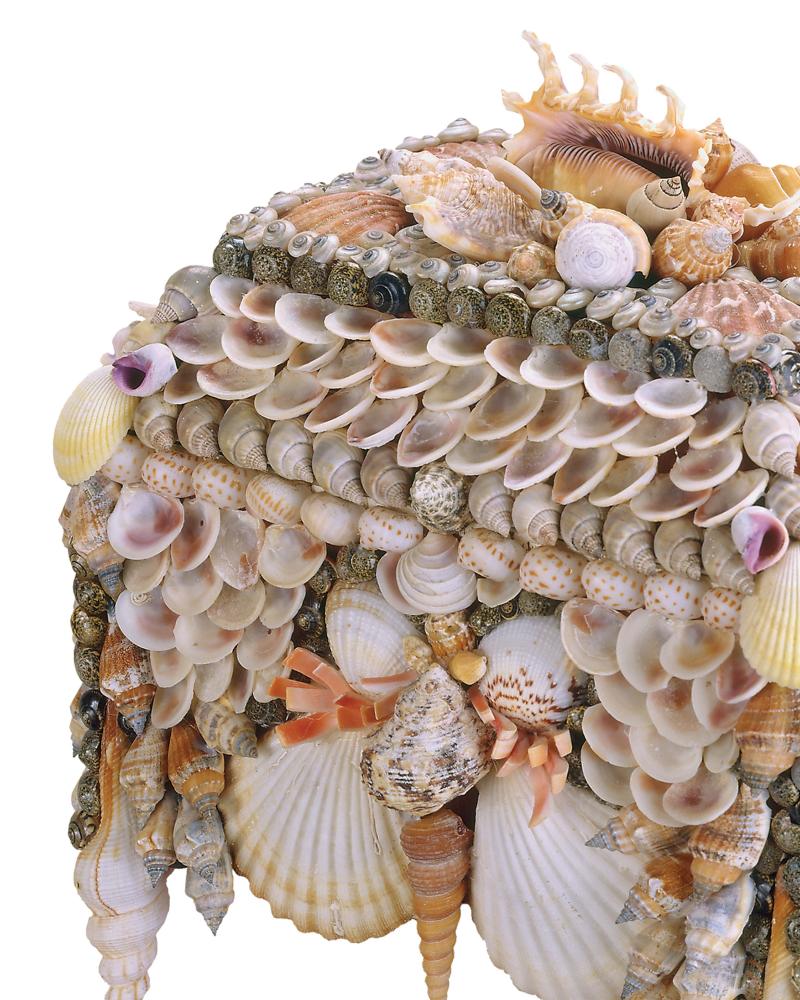The exquisite artistry of the Boardwalk Shell Jewelry Box has its origins in Victorian Shell Work, its handmade decorative accent reminiscent of the grottoes that proliferated in the palaces, chateaux and manor houses of European nobility during and after the Renaissance. Regally balanced on conical shell legs, its delicate beauty ornaments the spot it holds, be it a vanity or a dresser, while keeping jewelry within easy reach.