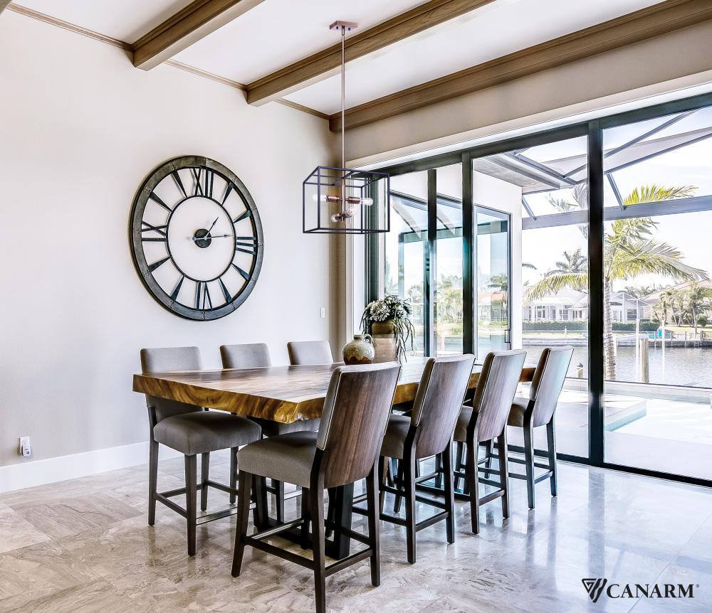 Its matte black finish with gold accents adds a touch of sophistication and warmth to any interior space, making it a stylish focal point in dining rooms, living rooms, or kitchens.