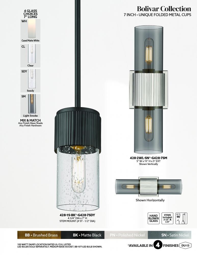 The stately Bolivar Collection is a study in architectural design and subtle details. The stylish and stately ribbed base houses a cylindrical glass shade.