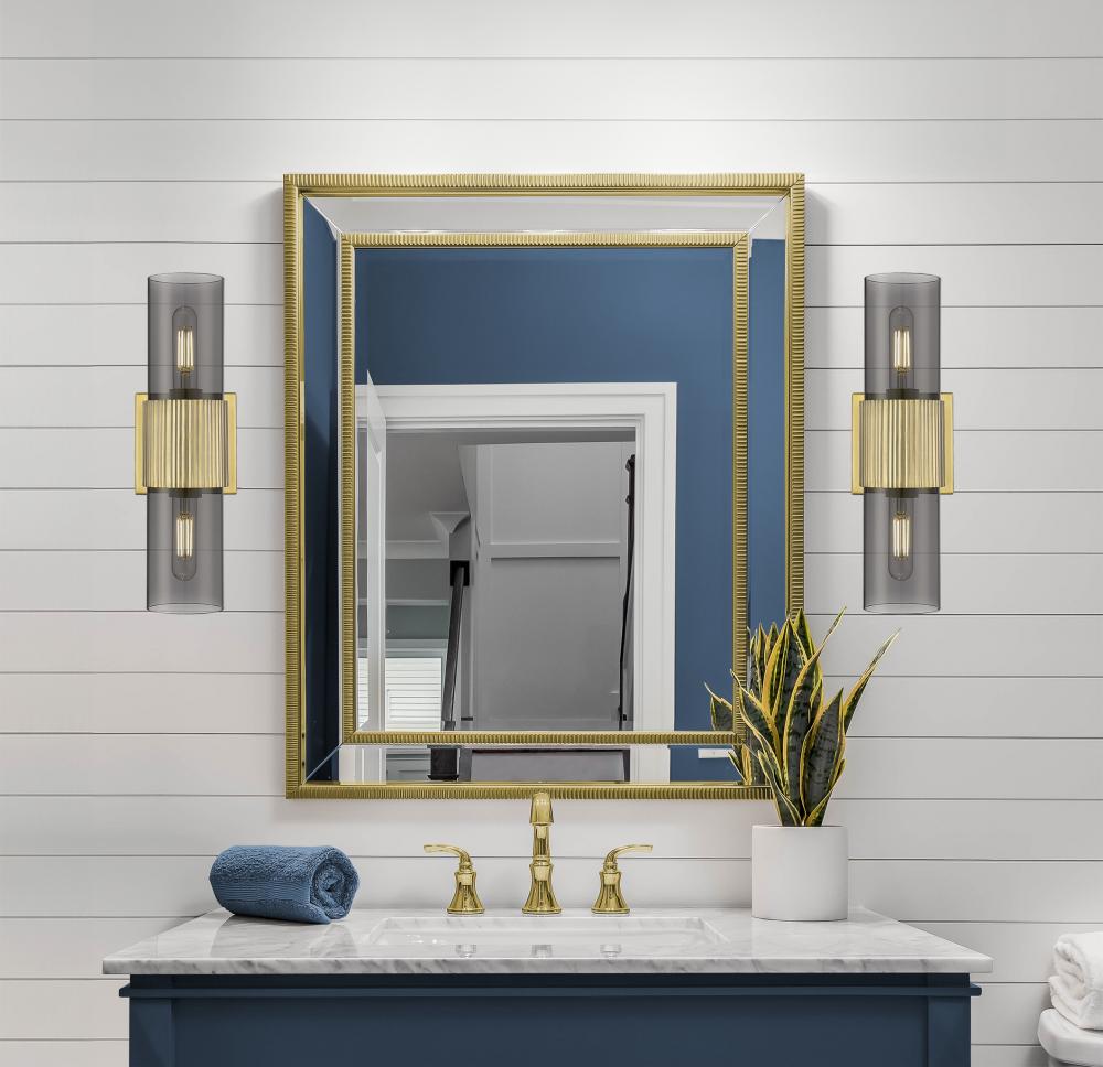 Bolivar - 2 Light - 5 inch - Brushed Brass - Light Smoke Shade - Bath Vanity Light