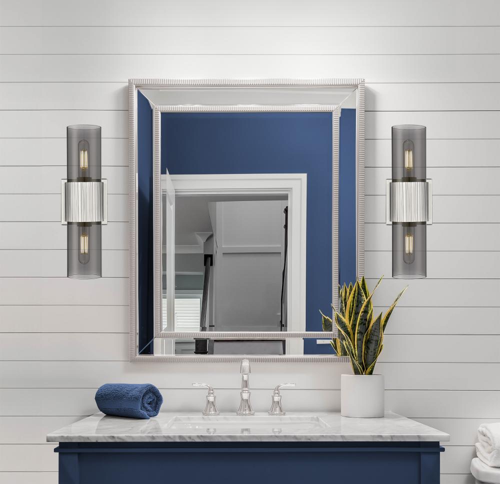 Bolivar - 2 Light - 5 inch - Satin Nickel - Light Smoke Shade - Bath Vanity Light