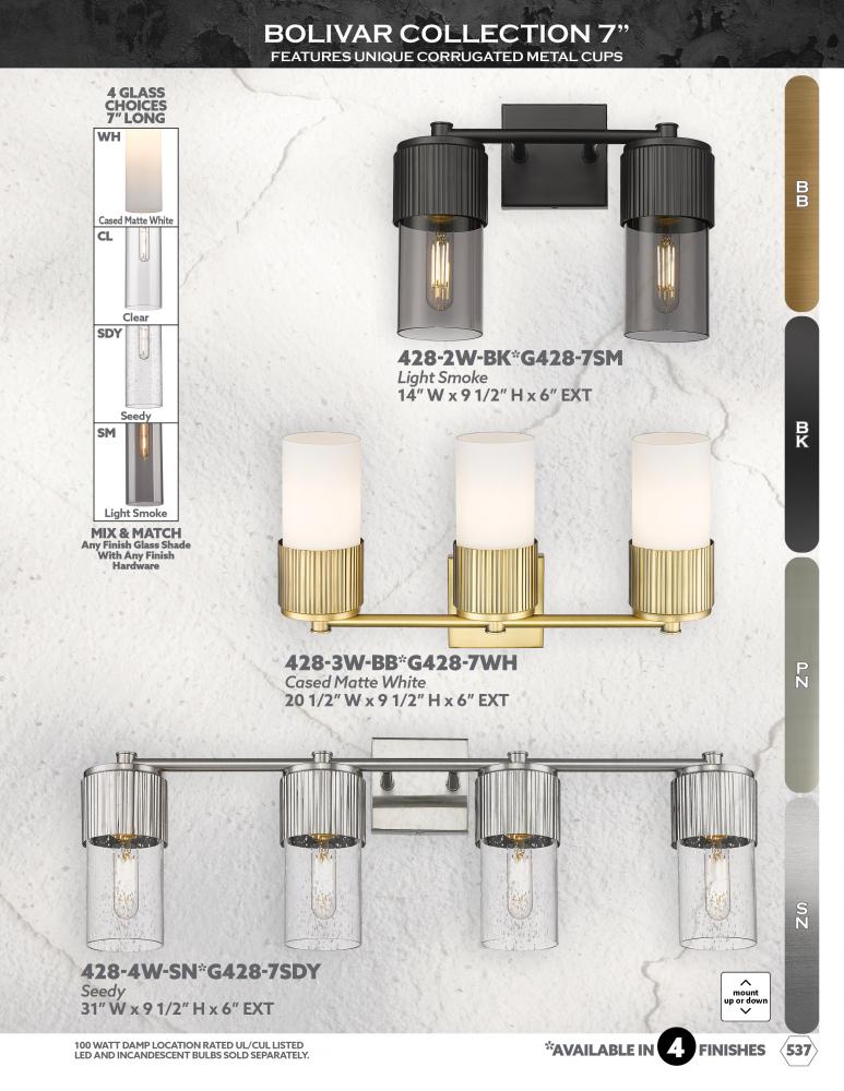 The stately Bolivar Collection is a study in architectural design and subtle details. The stylish and stately ribbed base houses a cylindrical glass shade.
