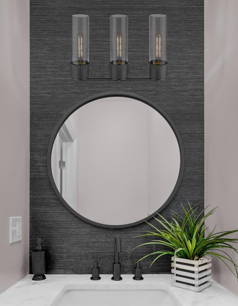 Bolivar - 3 Light - 21 inch - Matte Black - Light Smoke Shade - Bath Vanity Light