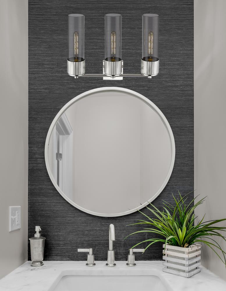 Bolivar - 3 Light - 21 inch - Polished Nickel - Light Smoke Shade - Bath Vanity Light